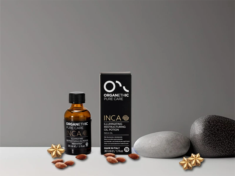 Inca oil is a powerhouse of nutrition, loaded with antioxidants and anti-aging agents. It contains Omega 3, 6 and 9, but also polyphenols, vitamins A and E. Its unsaturated fatty acids allow it to penetrate deep into the strands of your hair and help protect skin and hair from the damaging effects of free radicals and premature aging. Obtained through cold pressing.